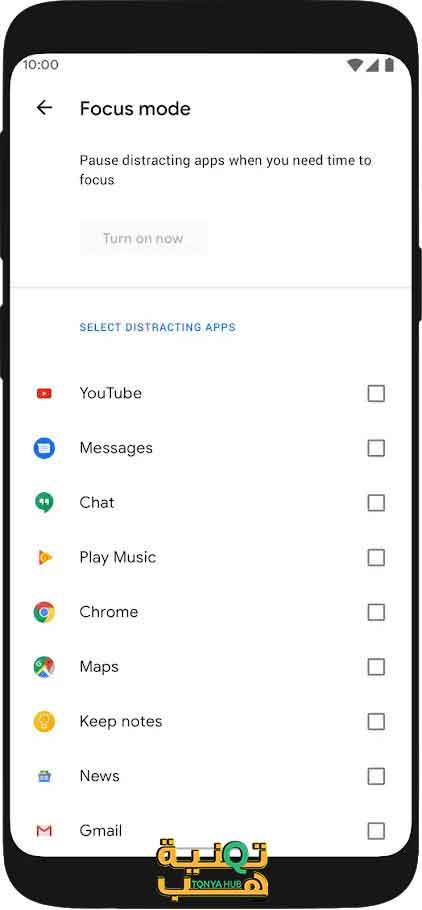 حدد التطبيقات التي تجدها مشتتة بالنسبة اليك – مثل البريد الإلكتروني أو الأخبار أو غيرهم – وأجعلها صامتة حتى تخرج من وضع التركيز وإرسال الاشعارات.