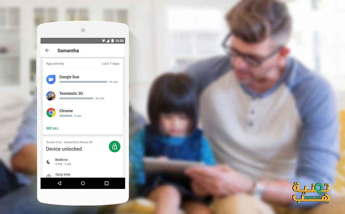Now Family Link أصبح جزء علي اي جهاز يعمل بنظام Android 10 ، توجد في الإعدادات تحت Digital Wellbeing. يمكن للوالدين استخدام هذه الأدوات للتعيين والتحكم في القواعد الأساسية مثل وقت الشاشة اليومي ووقت نوم الجهاز والوقت على تطبيقات محددة والمزيد. يمكنكم أيضًا المراجعة والتحكم في التطبيقات التي يثبتها الأطفال على أجهزتهم ، وكذلك التحكم في استخدامها.